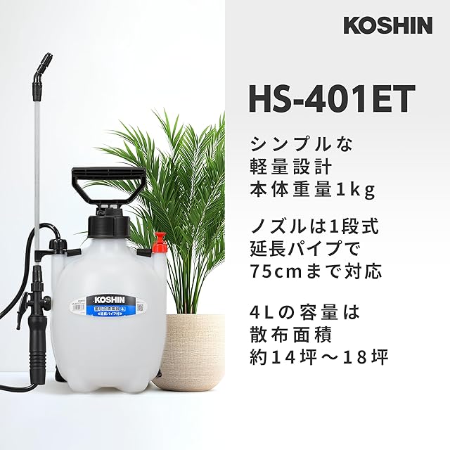 商品名:工進(KOSHIN) 蓄圧式 噴霧器 タンク 4L ミスターオート HS-401ET 1段 ノズル 継足しパイプ 噴口 1個 防除 消毒 散布