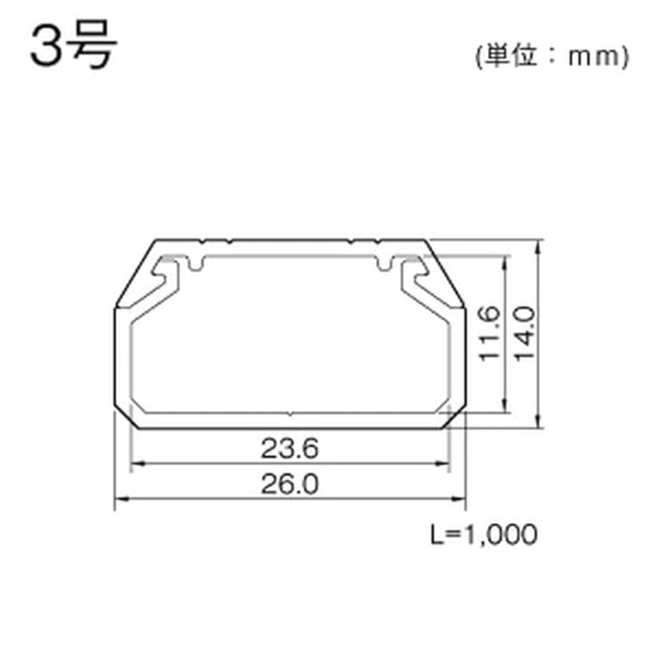 ●入数(本):1●種別:本体●色:ミルキーホワイト●材質:塩化ビニル●号数:3号●寸法図(長さ/横/高さ)(mm):1000×26×14●重量(kg):0.141●豊富なサイズとカラーを取揃えております。●2m品もご用意しております。●エフモールよりも収容力が40%アップしています。●取付け用のねじ穴(φ4)が3穴あります。(0号、2m品は除く)●施工の際には、両面テープの併用をお勧めします。<br>