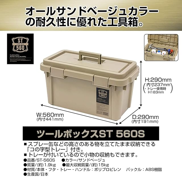 商品名:JEJアステージ 収納ボックス 日本製 アウトドア収納 キャンプ [Sシリーズ ツールボックス ST560S] サンドベージュ 幅56×奥行29×高さ29cm