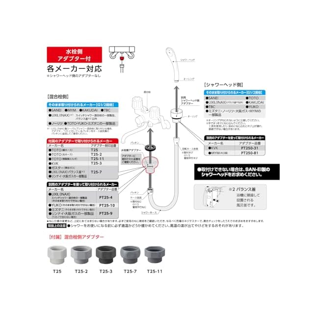 【止水機能のあるシャワーヘッドを取り付ける場合】水圧が0.3MPa以上あると先端での急閉止により、ホースの金具が抜けるなどの破損が発生する恐れがあります。調圧弁(SANEI品番:PV710F)のご使用をおすすめします。