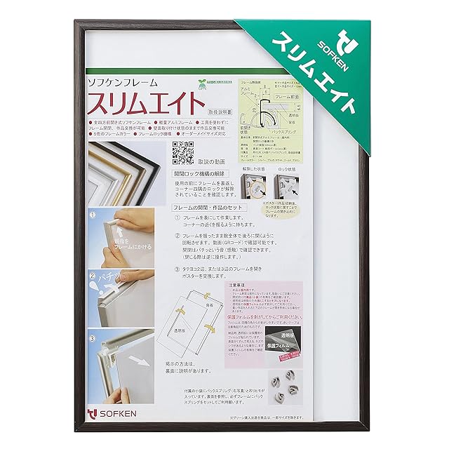 ソフケン アルミ額縁 スリムエイト A4 木目柄オーク 【軽量で作品セットが簡単なポスターフレーム】