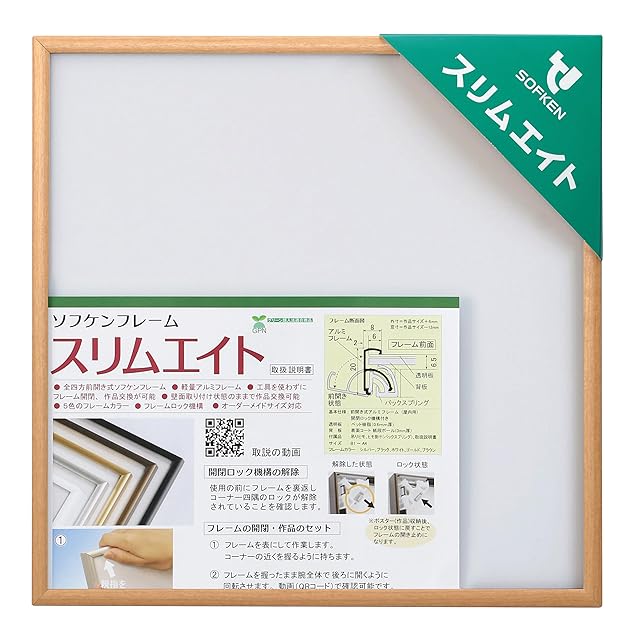 ソフケン アルミ額縁 スリムエイト 250X250 木目柄メイプル 【手ぬぐい額、ハンカチ額、正方形額、軽量で作品セットが簡単なポスターフレーム】