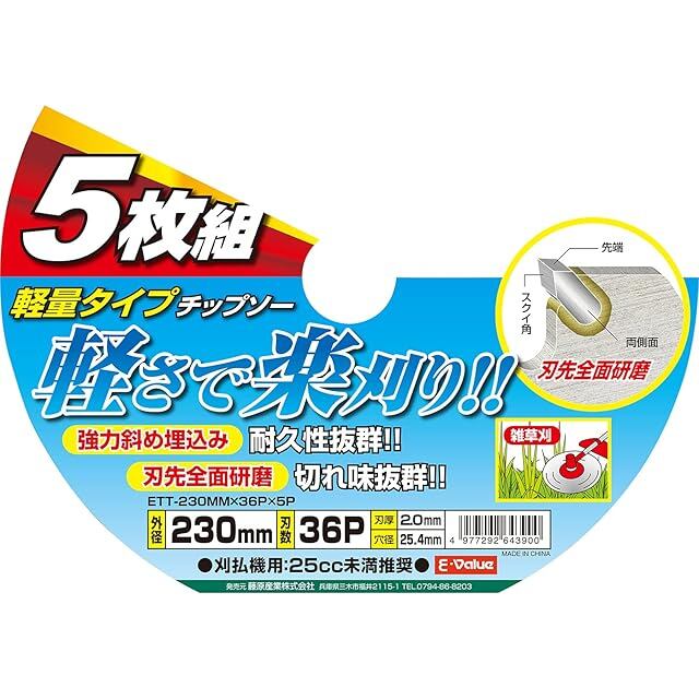 商品名:イーバリュー(E-Value) 軽量タイプチップソー 外径230mm×刃数36P 穴径25.4mm 5枚組 ETT-230×36P×5P
