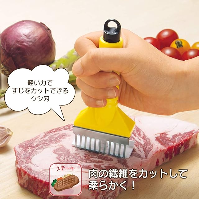 商品名:下村工業 日本製 やきぱー! やわらか 肉すじ切り イエロー 65×150×25mm 新潟 燕三条製 YP-615