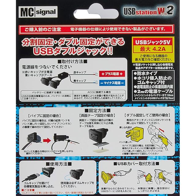 ●USB2口●5V4.2A●ハンドル固定用クランプ○