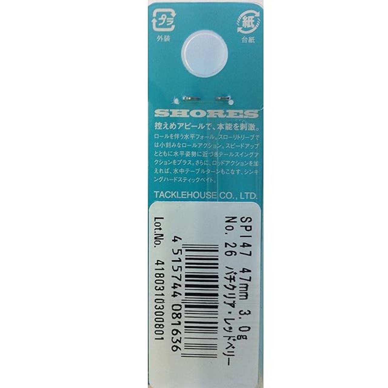 商品名:タックルハウス(TackleHouse) ペンシルベイト ショアーズ ピットステック 47mm 3g バチクリア・レッドベリー #26 SPI47 ルアー
