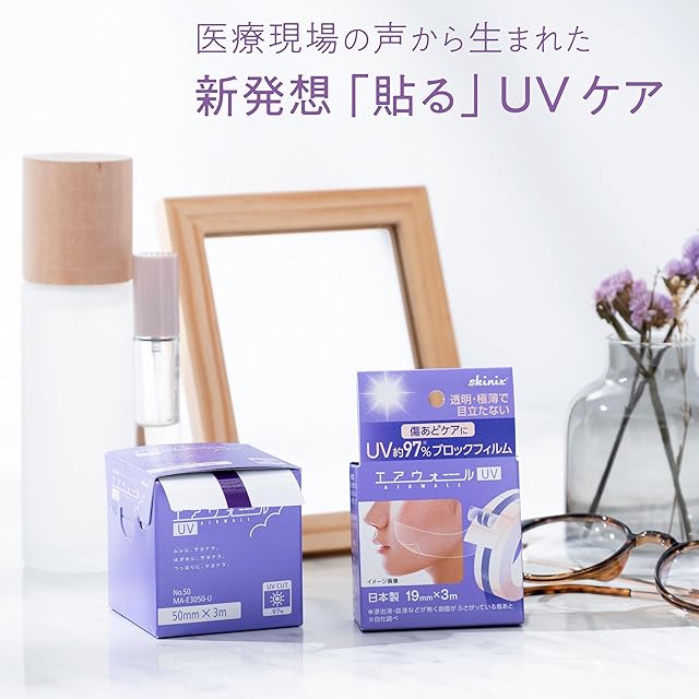 商品名:skinix エアウォールUV 19mm×3m 透明 97% UVブロック 防水フィルム 医療現場の声から生まれた シミ取り ホクロ除去 顔 などのケアに 貼る UVケア 肌の保護 テープ 1巻 MA-E3019-U