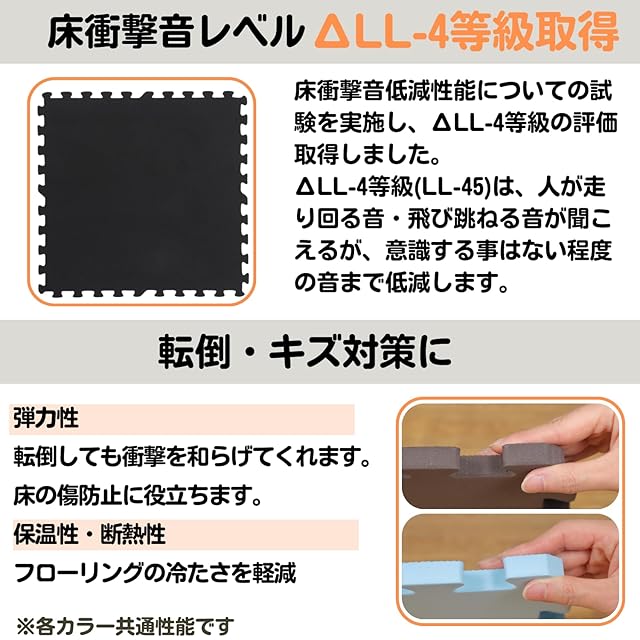 他の色と自由に組み合せてお好きなデザインに。優れたクッション性で転んだときの安全性もアップ。