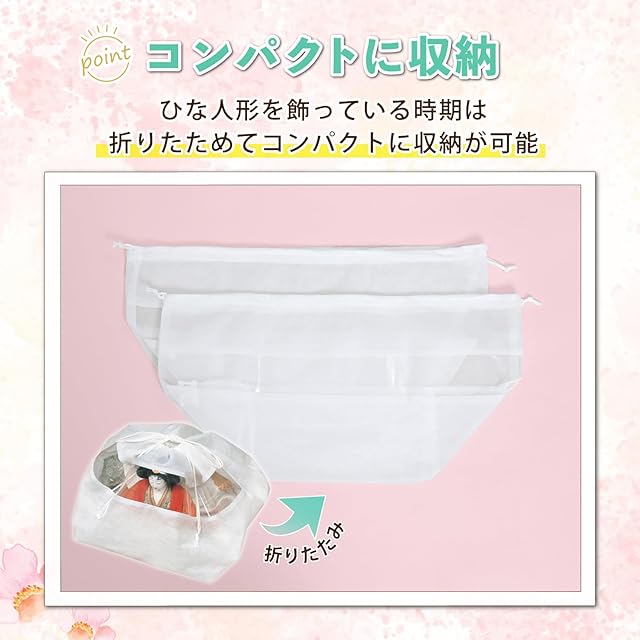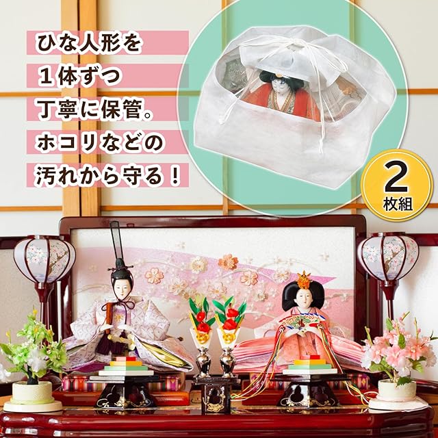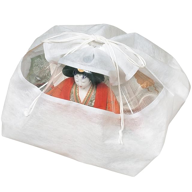 【通気性に優れたひな人形用保存袋】:通気性の良い不織布でひな人形をホコリから守り大切に保管。