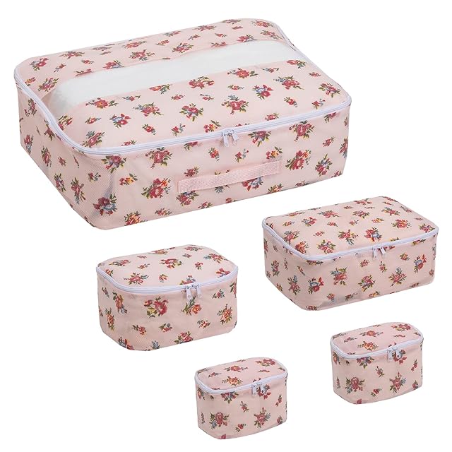 商品タイプ:J_収納ポーチ 5点セット 薄ピンク 小花柄