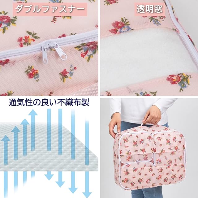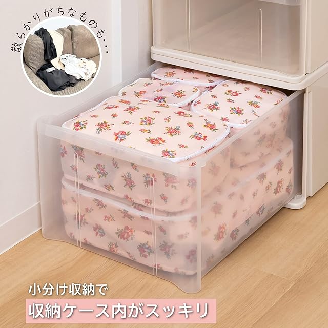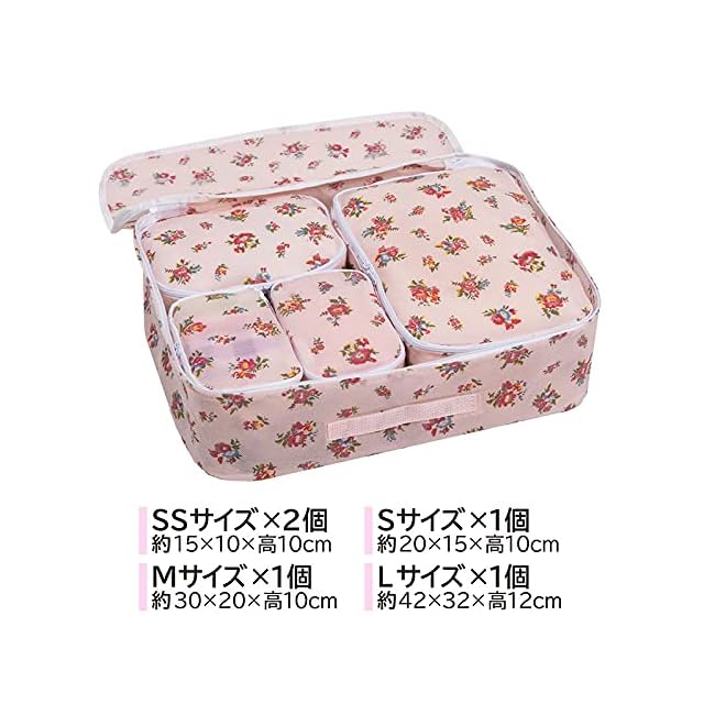 【商品仕様】:サイズ/SSサイズ:約幅15×奥行10×高さ10cm・Sサイズ:約幅20×奥行15×高さ10cm・Mサイズ:約幅30×奥行20×高さ10cm・Lサイズ:約幅42×奥行32×高さ12cm(透明窓・持ち手付き)、カラー/薄ピンク、柄/小花柄、内容/5個(SSサイズ2個・Sサイズ1個・Mサイズ1個・Lサイズ1個)、材質/本体:ポリプロピレン・透明窓(Lサイズのみ):ポリエチレン