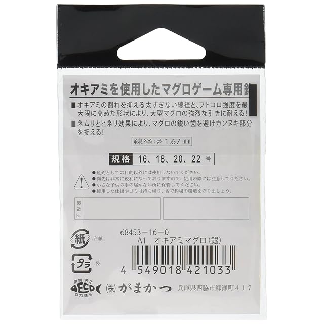 商品名:がまかつ(Gamakatsu) シングルフック A1 オキアミマグロ 16号 5本 銀 68453