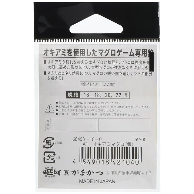 商品名:がまかつ(Gamakatsu) シングルフック A1 オキアミマグロ 18号 5本 銀 68453
