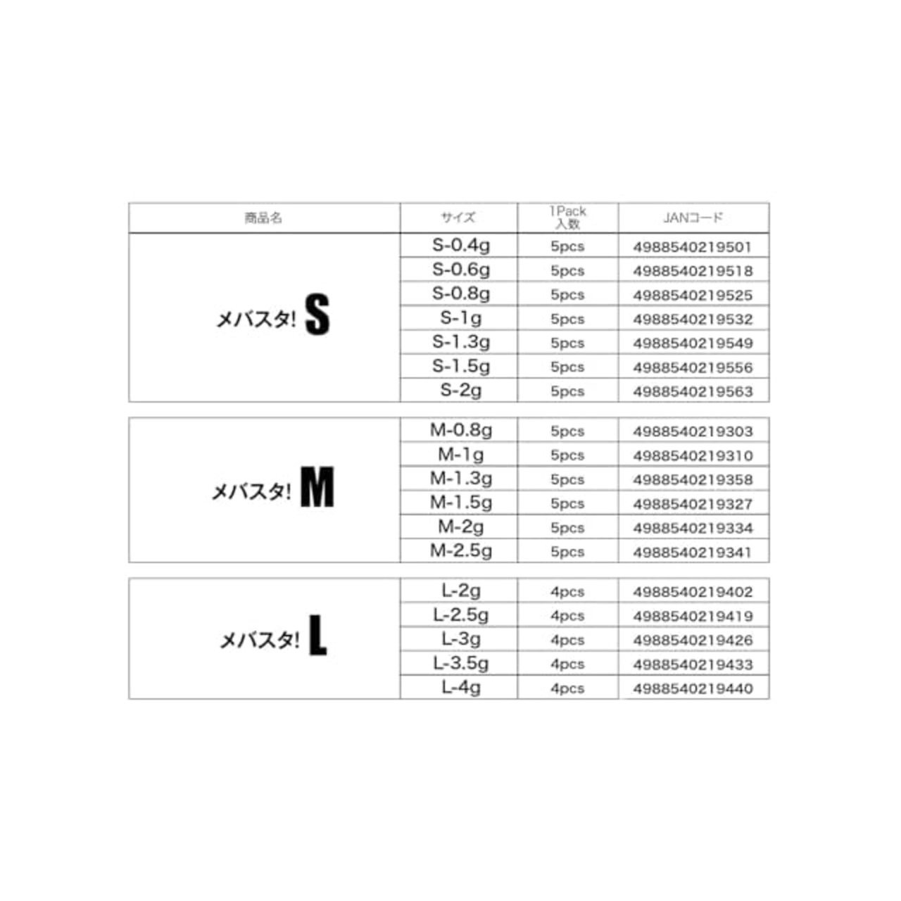 ティクト(TICT) メバスタ S-1.5g 5ヶ入