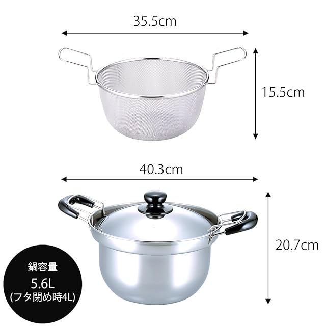 サイズ:幅約40.3×奥行26.6×高さ20.7cm(フタ含む)、本体内径/約22×深さ11.7cm、ザル/幅約35.5×奥行22.3×高さ15.5cm、ザル内径/約20.8×深さ10.2cm