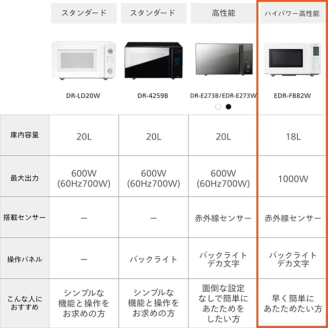 商品名:TWINBIRD(ツインバード) 電子レンジ 18L 単機能 1000W 時短 スピードあたため オートモード フラットテーブル 一人暮らし 赤外線センサー ヘルツフリー ホワイト EDR-FB82W