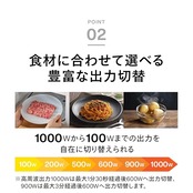 <インバーター※>1000Wから100Wまでの出力を自在に切り替えられる「インバーター」を搭載。※ 高周波出力1000Wは最大1分30秒、900Wは最大3分経過した後は600Wへ出力が切り替わります。