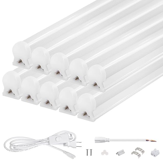 高輝度2800LM 器具一体型 LED蛍光灯 直管 40W形 18W 昼光色 120cm 100V/200V対応 低ノイズ 耐高温 低放熱 長持ち50000h 取付簡単 リフォーム 天井照明 ガレージ 倉庫 PL保険加入済 10本