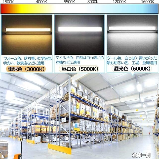幅広い用途:色温度:昼光色(6000K)クール色 使用場所:工場 倉庫 ガレージ 事務所 スーパー 階段 クローゼットなど