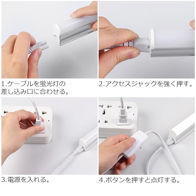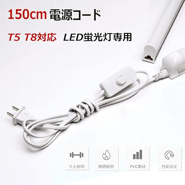 LEDチューブ電源延長コード、T5 / T8器具に対応専用スイッチ付電源コード。