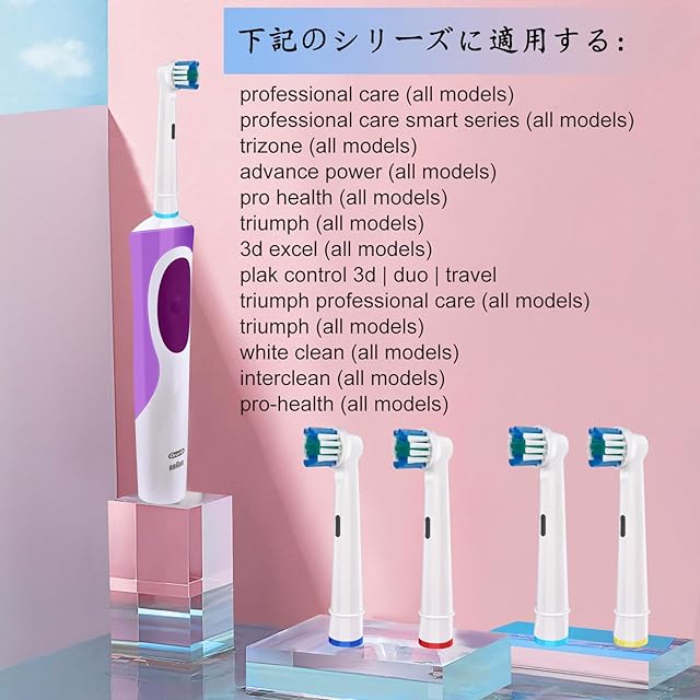 ブラウン オーラルb 替えブラシ:電動歯ブラシのおーらるびー 替え歯ブラシは米国で開発され、ヂュポン社製作された歯ブラシの毛を採用し、丈夫で耐久性および清浄力が強いところが特徴で、虫防止、歯ホワイトニングに効果があり、世界中で人気物としてはやっています。歯先の先端を丸型に加工され、歯や歯ぐきを傷つけることなく、やさしくブラッシングできます。ご注意:こちらのオーラル b 替え用はけは硬めで、柔らかいブラシが好きな方は当店他の極細毛ブラシをお選びください。