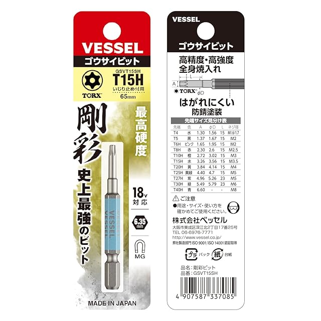 商品名:ベッセル(VESSEL) 片頭トルクス 剛彩ビット T15H×65 1本 GSVT15SH