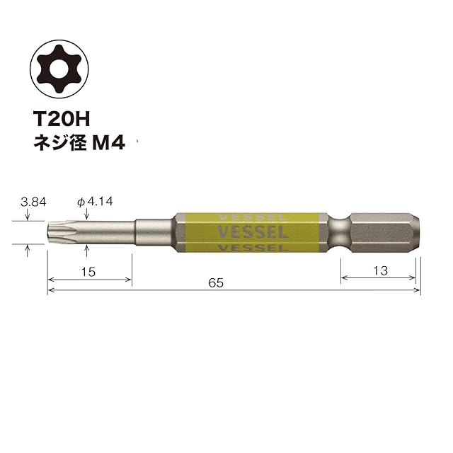 商品名:ベッセル(VESSEL) 片頭トルクス 剛彩ビット T20H×65 1本 GSVT20SH