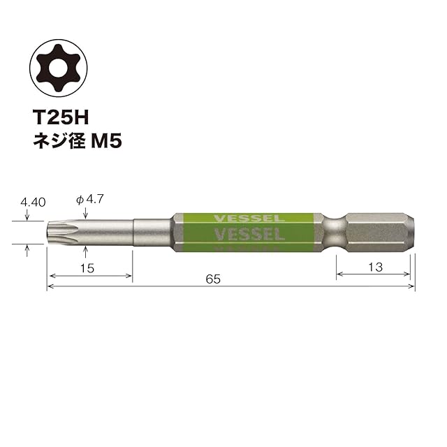 商品名:ベッセル(VESSEL) 40V対応 片頭トルクス 剛彩ビット T25H×65 1本 GSVT25SH