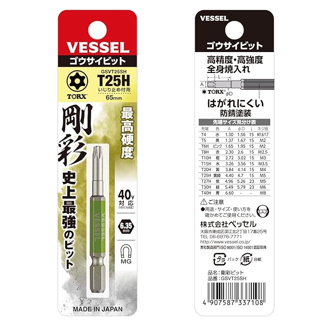 ベッセル(VESSEL) 40V対応 片頭トルクス 剛彩ビット T25H×65 1本 GSVT25SH