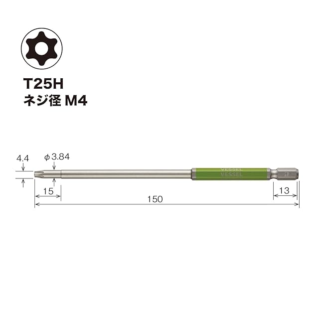 商品名:ベッセル(VESSEL) 40V対応 片頭トルクス 剛彩ビット ロングタイプ T25H×150 1本 GSVT25LH