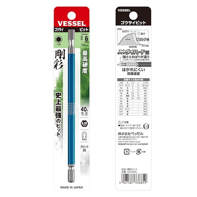 ベッセル(VESSEL) 40V対応 片頭ヘックス 剛彩ビット ロングタイプ 対辺6×150 1本 GSH060L