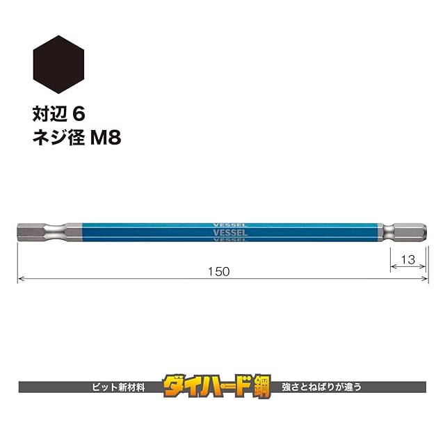 商品名:ベッセル(VESSEL) 40V対応 片頭ヘックス 剛彩ビット ロングタイプ 対辺6×150 1本 GSH060L