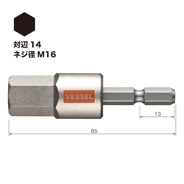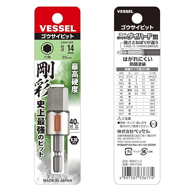 ベッセル(VESSEL) 40V対応 片頭ヘックス 剛彩ビット 対辺14×65 1本 GSH140S