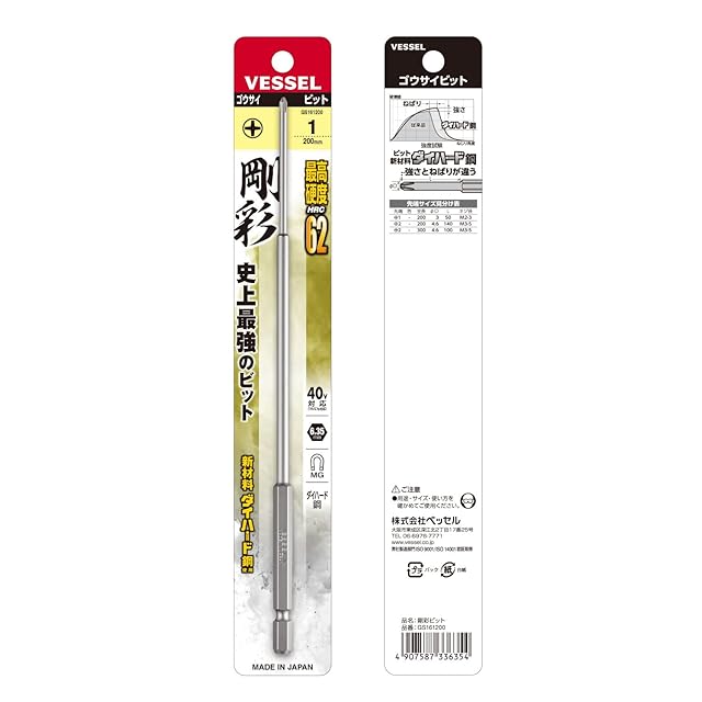 商品名:ベッセル(VESSEL) 片頭 剛彩ビット +1×200 1本 GS161200