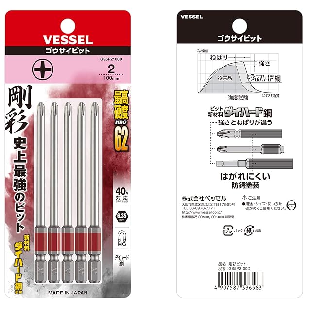 商品名:ベッセル(VESSEL) 40V対応 片頭 剛彩ビット +2×100 5本組 GS5P2100D