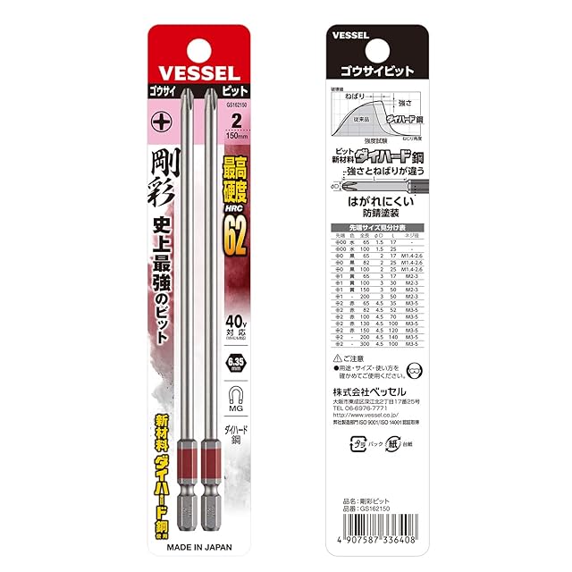 商品名:ベッセル(VESSEL) 40V対応 片頭プラス 剛彩ビット +2×150 2本組 GS162150