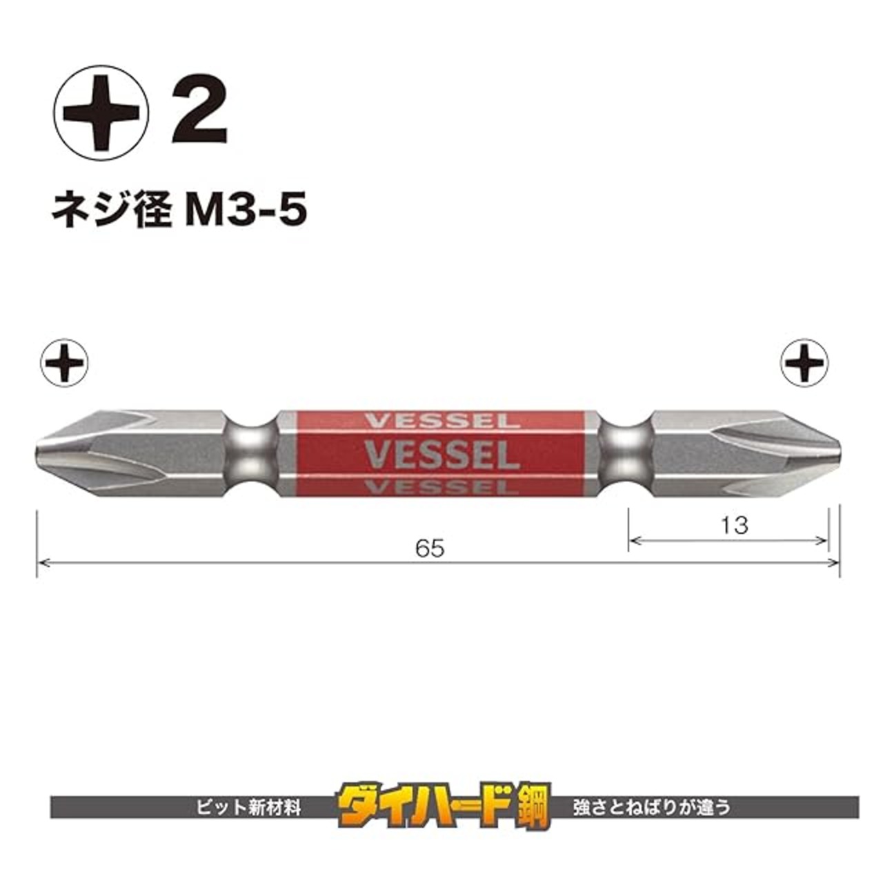 商品名:ベッセル(VESSEL) 40V対応 両頭プラス 剛彩ビット +2×65 5本組 GS5P2065