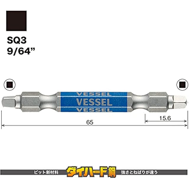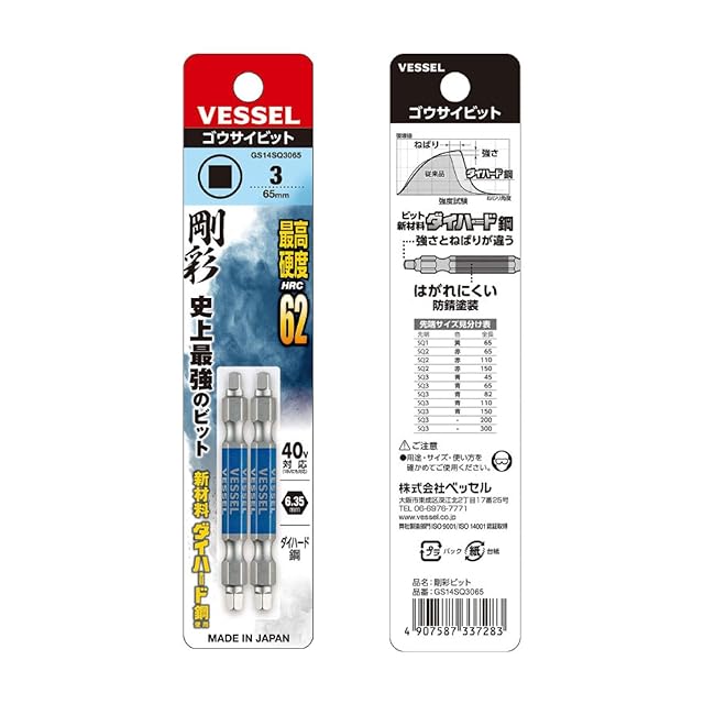 商品名:ベッセル(VESSEL) 40V対応 両頭スクエア 剛彩ビット SQ3×65 2本組 GS14SQ3065