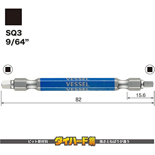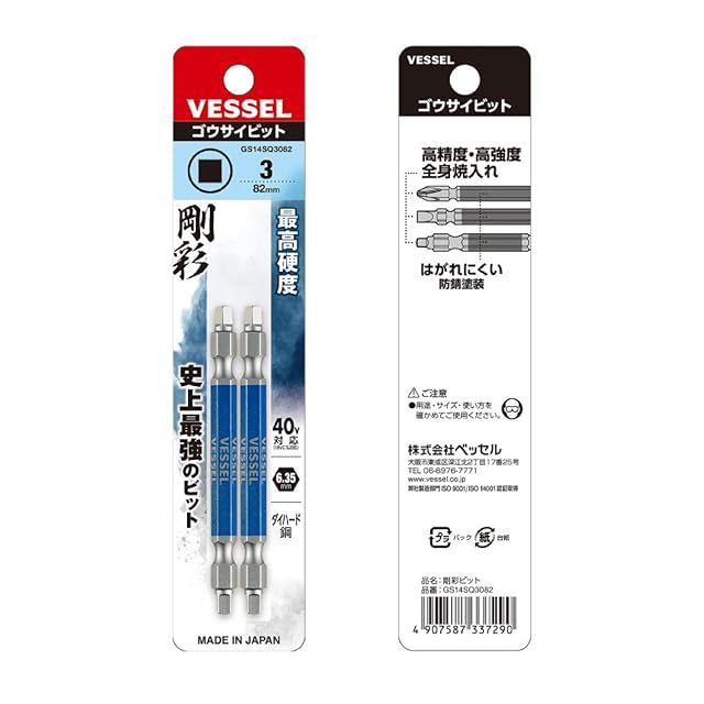 商品名:ベッセル(VESSEL) 40V対応 両頭スクエア 剛彩ビット SQ3×82 2本組 GS14SQ3082