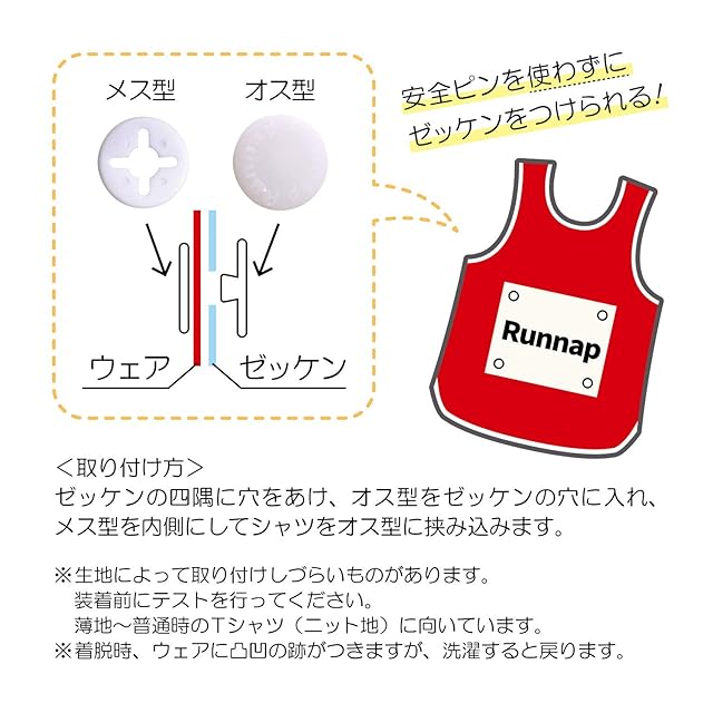 商品本体サイズ:ランナップ/表(オス型)・直径:約17.4mm 裏(メス型)・直径:約15.8mm/、ゼッケン/横約21cm×縦約15cm