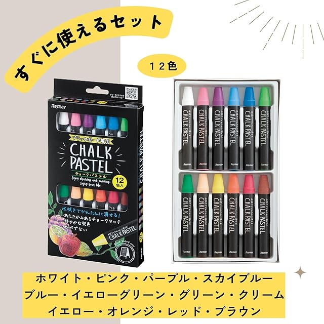 商品名:レイメイ藤井 黒板 ブラックボード チョーク パステル ダストレス 水拭き消字 12色 LBCP100