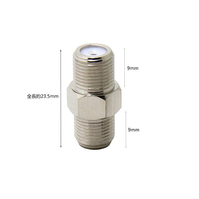 【高品質】真鍮の材質、ニッケルメッキです。信号ロスを最大限に低減します。<br><br>【ネジ式】Fメス-Fメスネジ式なので、簡単に取り付け、しっかりと接続して、外しにくいです。<br><br>【スペースを取らない】ケーブルの代わりに、F型オス接続用コンパクトなコネクタです。スペースを取らなくて、狭いところでも使えて、端子の周りがスッキリになります。<br><br>【アンテナケーブル延長】テレビ用アンテナケーブル(同軸ケーブル)で使用されているF型コネクタ同士を接続することができます。<br><br>【12か月】ご購入日から12か月を提供いたします。万が一、問題がございましたら、ご連絡を頂けると迅速に対応致します。お客様にご満足頂けるよう精一杯頑張ります。