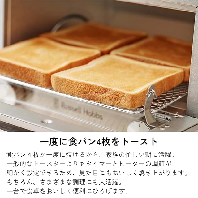 商品名:【公式】 Russell Hobbs ラッセルホブス オーブントースター マットブラック 7740JP-BK 3ヶ月延長 4枚焼き 黒 大き目サイズ 温度調節 お手入れ簡単
