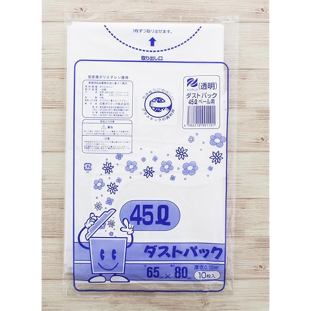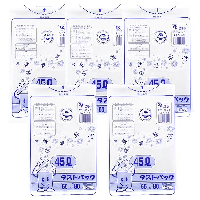 商品名:日泉ポリテック ゴミ袋 ゴミ箱用アクセサリ 透明 45L ダストパック 厚手0.03mm 日本製 10枚入 5個セット