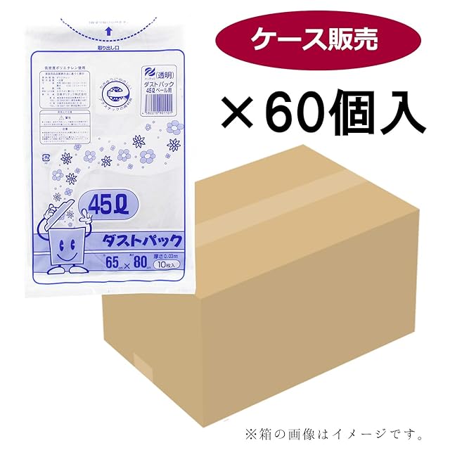 日泉ポリテック ゴミ袋 ゴミ箱用アクセサリ 透明 45L ダストパック 厚手0.03mm 日本製 (ケース販売) 10枚入 60個セット