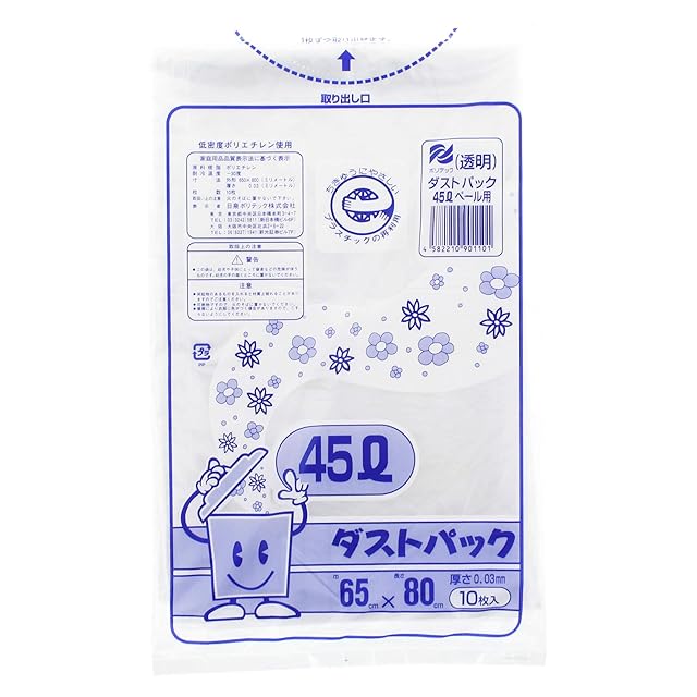 商品名:日泉ポリテック ゴミ袋 ゴミ箱用アクセサリ 透明 45L ダストパック 厚手0.03mm 日本製 (ケース販売) 10枚入 60個セット