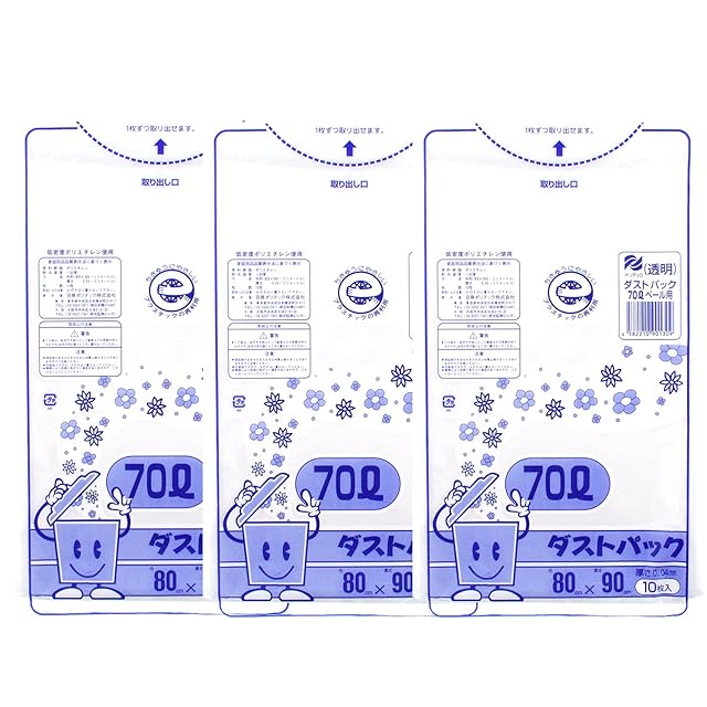 商品名:日泉ポリテック ゴミ袋 ゴミ箱用アクセサリ 透明 70L ダストパック 厚手0.04mm 日本製 10枚入 3個セット