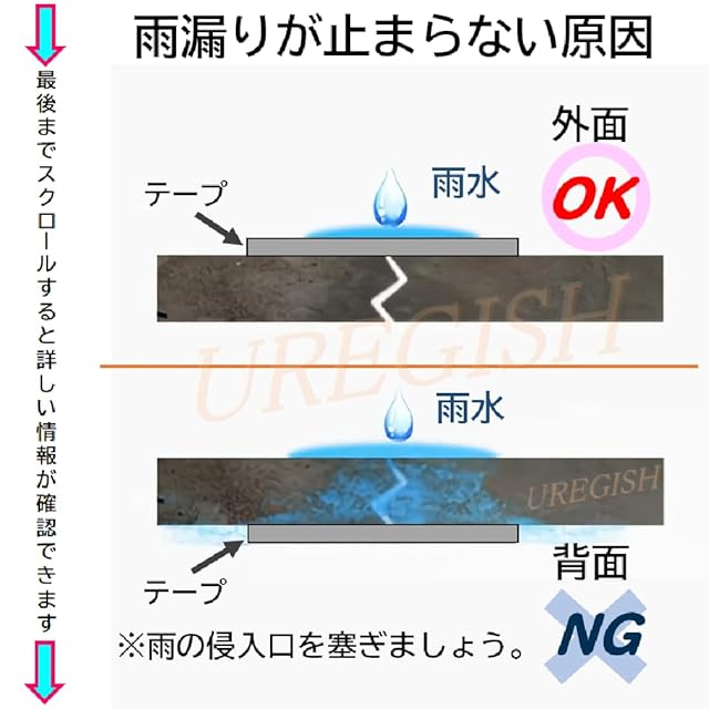 [ウレギッシュ] ひび割れ 補修テープ シーラントテープ 防水 強力粘着 壁 屋根 配管 雨漏り 水漏れ 水回り (150mm)