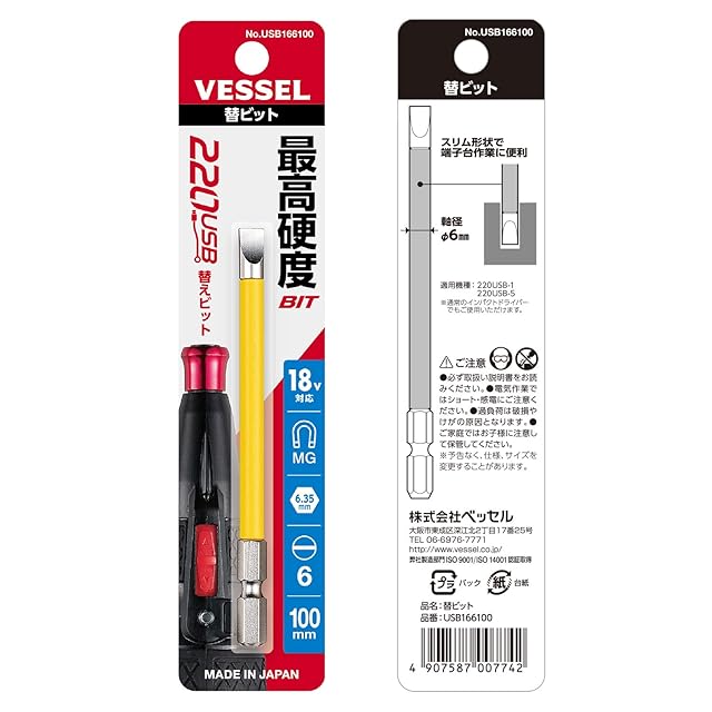 ベッセル(VESSEL) 被覆チューブ付ビット 電動 ボールグリップ ドライバー適用-6×φ6×100mm 1本 USB166100