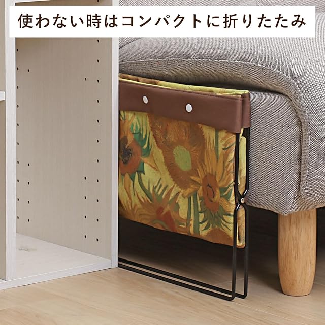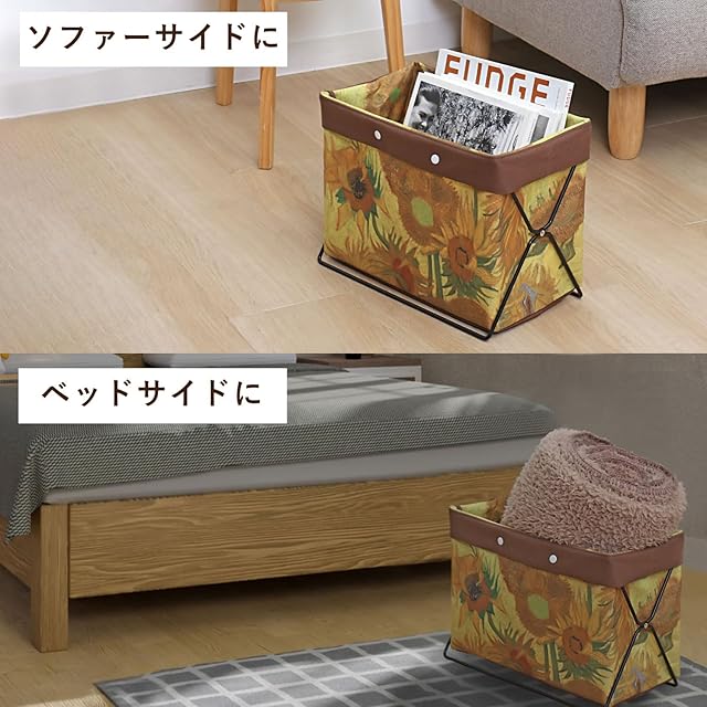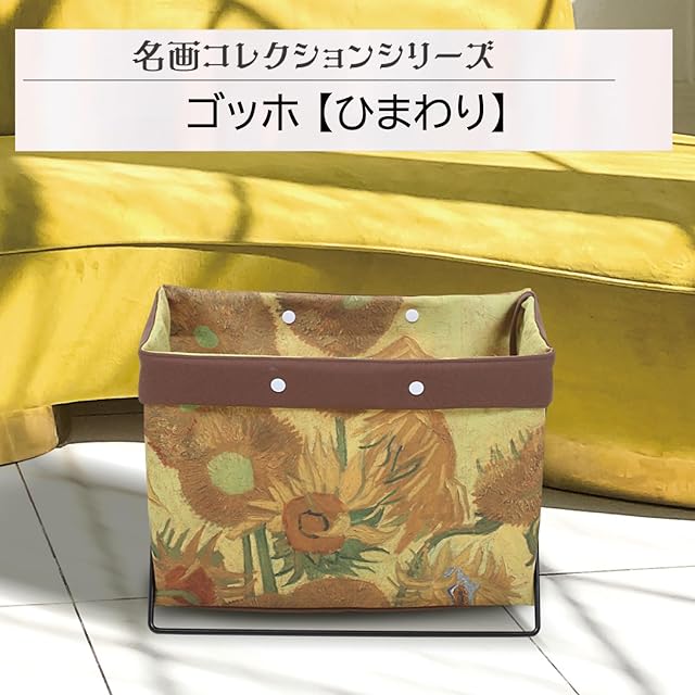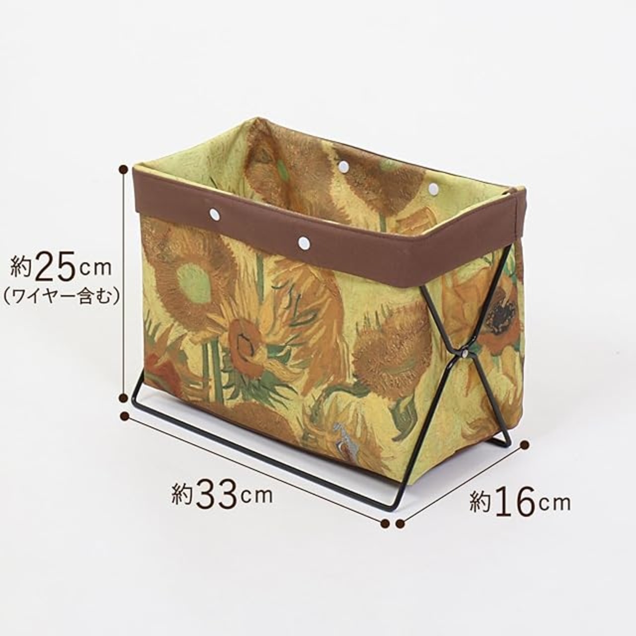 商品名:アストロ 荷物置き 収納ケース W33×D16×H25cm ゴッホが描いたひまわりをプリントしたワイヤー付きの収納ボックス 荷物入れ カバン置き サイドストッカー 900-82